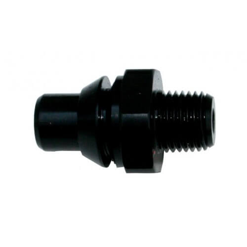 Male fitting for external fuel tanks with standard 1/4″ female fuel withdrawal. For fuel containers with vertical tank withdrawal and limited horizontal space to make hose connection.